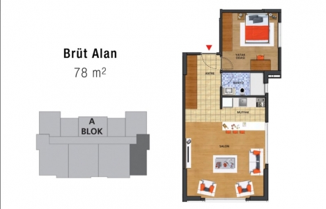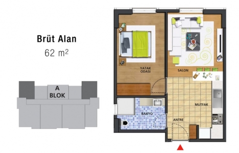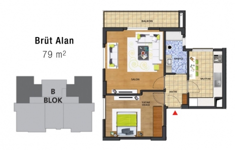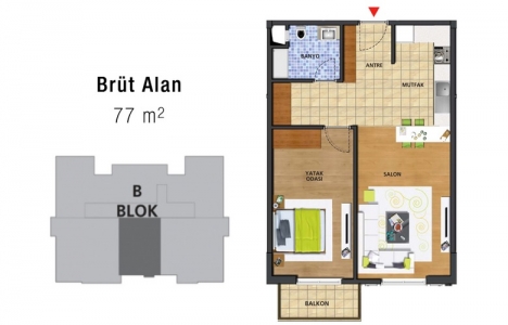 1+1 daire planı