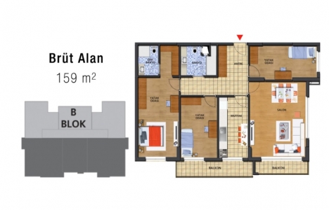 3+1 daire planı