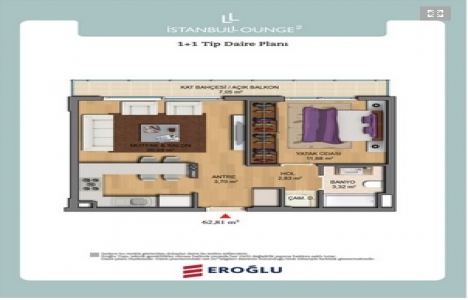 1+1 daire planı