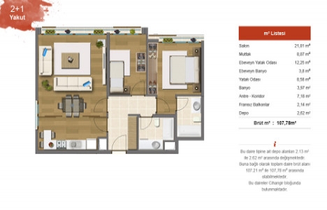 2+1 daire planı