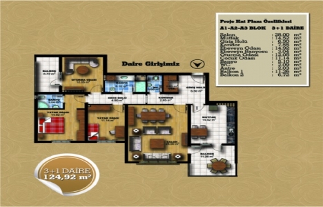 3+1 daire planı
