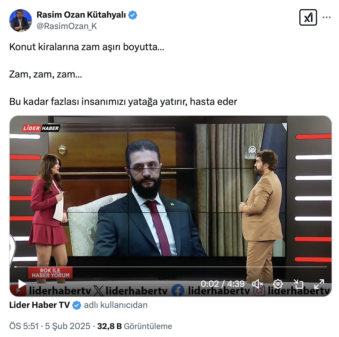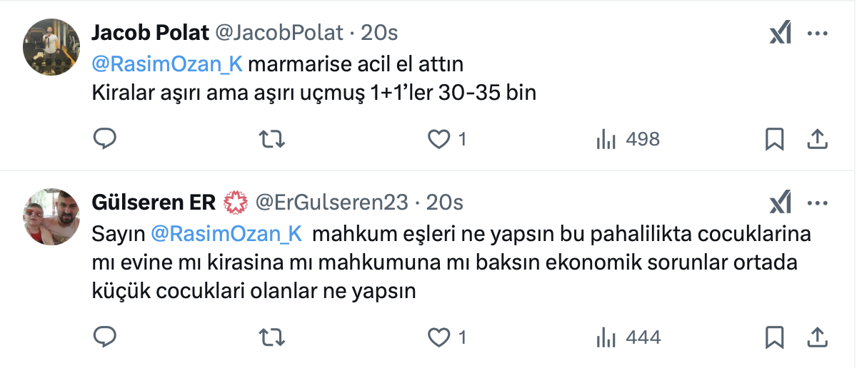 Paylaşımında konut kiralarına zammın aşırı boyutlarda olduğunu belirten, Rasim Ozan Kütahyalı, “Bu kadar fazlası insanımızı yatağa yatırır, hasta eder.” İfadelerini kullandı.