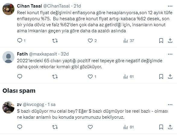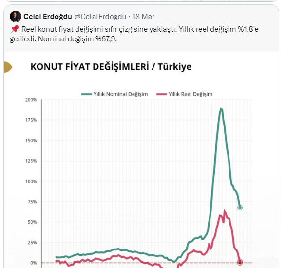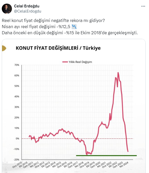 Konuyla ilgili sosyal medya hesabından değerlendirme yapan Şehir Plancısı ve Gayrimenkul Değerleme Uzmanı Celal Erdoğdu, ''Reel konut fiyat değişimi negatifte rekora mı gidiyor?'' sourusunu sordu. Peki vatandaşlardan ne yorumlar geldi. İşte o açıklama ve gelen yorumlar...