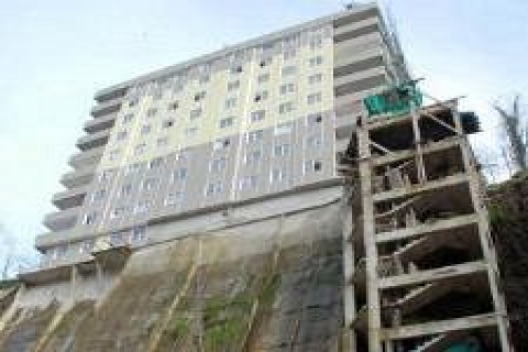 Rizeli müteahhit Yakup Güngör bir yamacın kenarına inşa ettiği 8 katlı apartmana giriş yolu olmadığı gerekçesiyle 8 katlı da merdiven yapmıştı