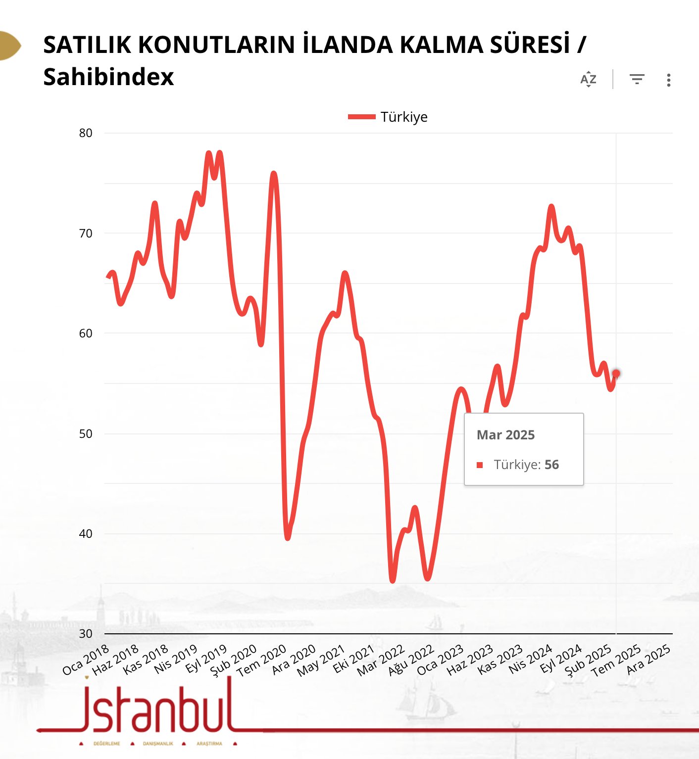 Mart 2025 itibarıyla Türkiye genelinde bir evin satılması ortalama İKİ ay sürüyor.