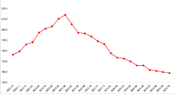 Aralık 2023’ten itibaren yönünü yukarı çeviren endeks eylülden ekime yüzde 4,5’lik bir artışla 165’e ulaştı. Geçen yılın ekim ayına kıyasla endeks yüzde 69,2 daha yüksek.