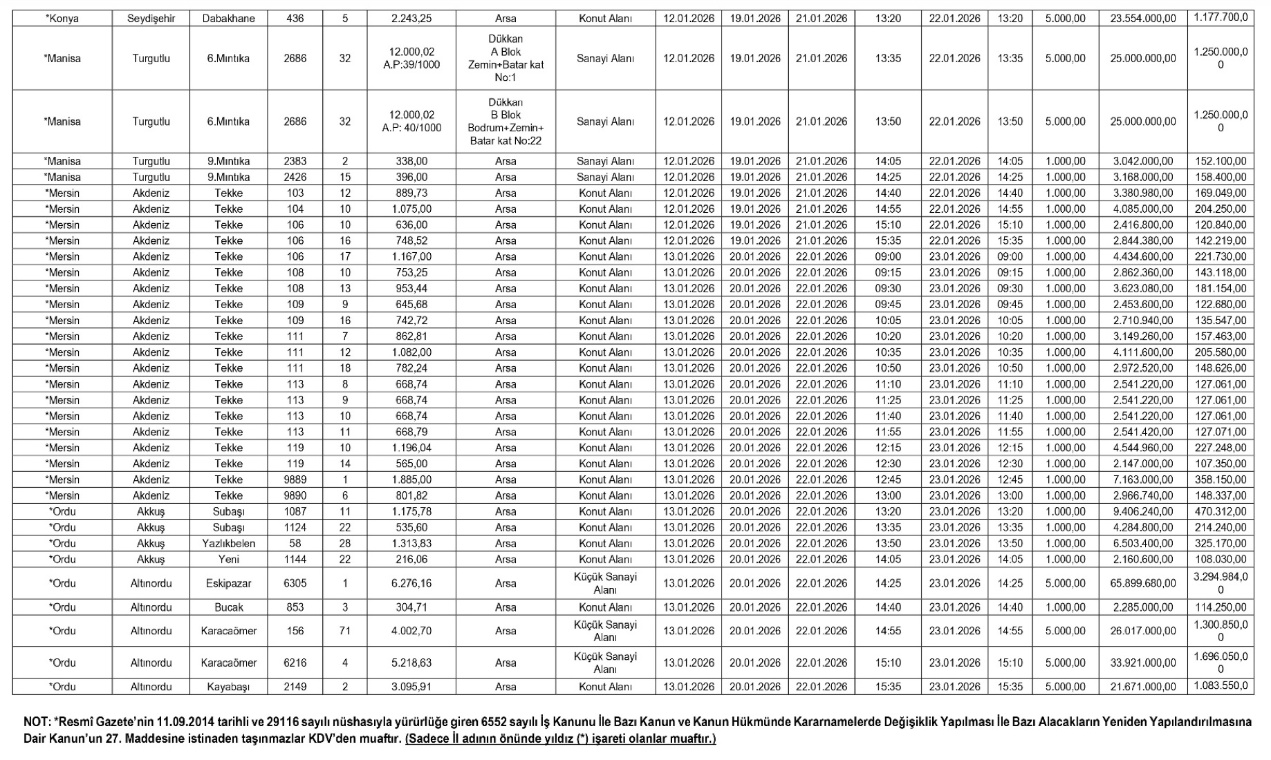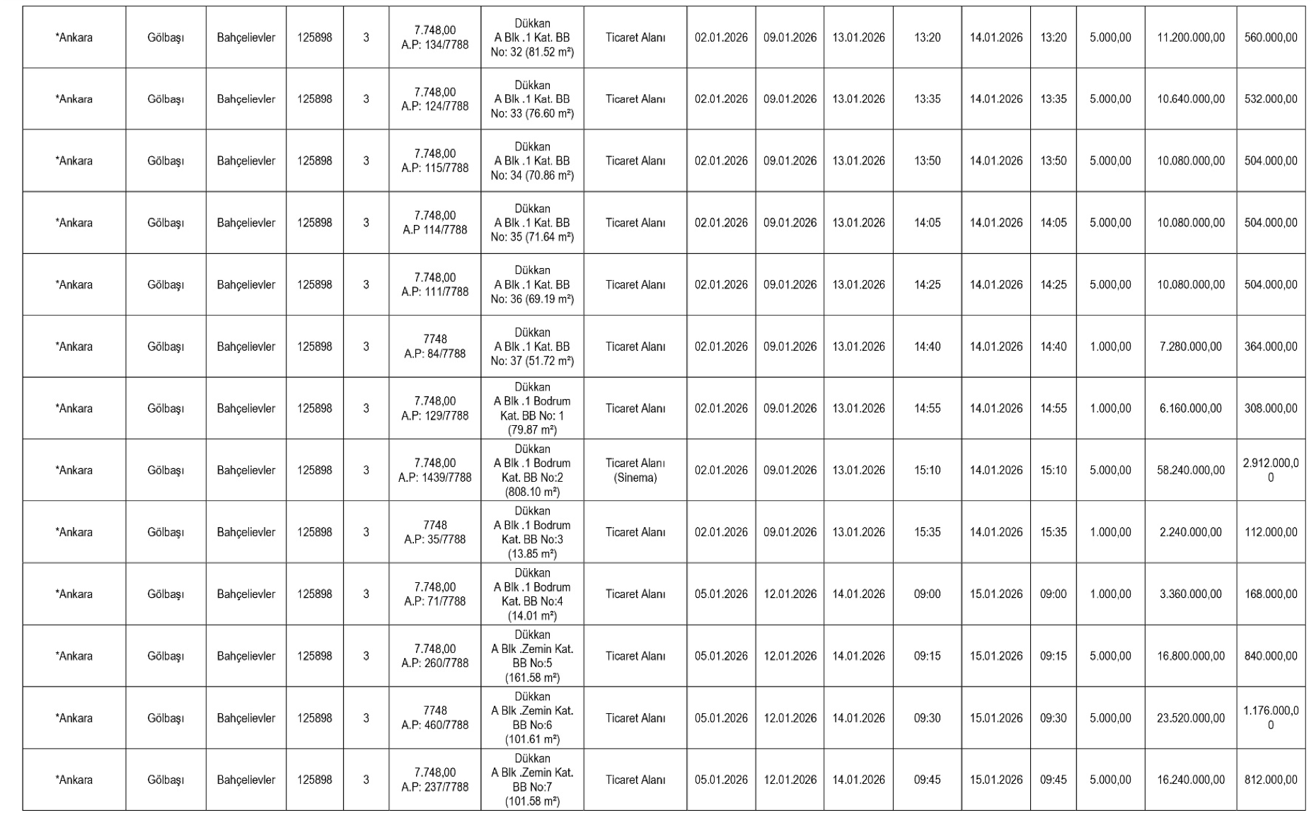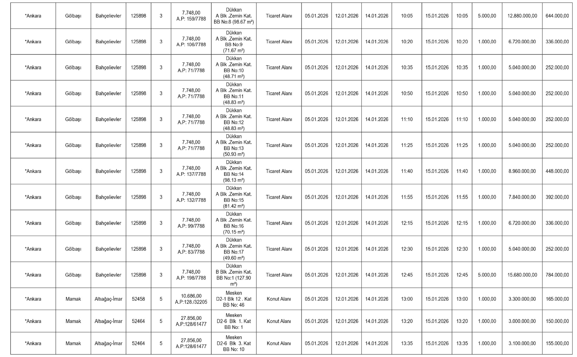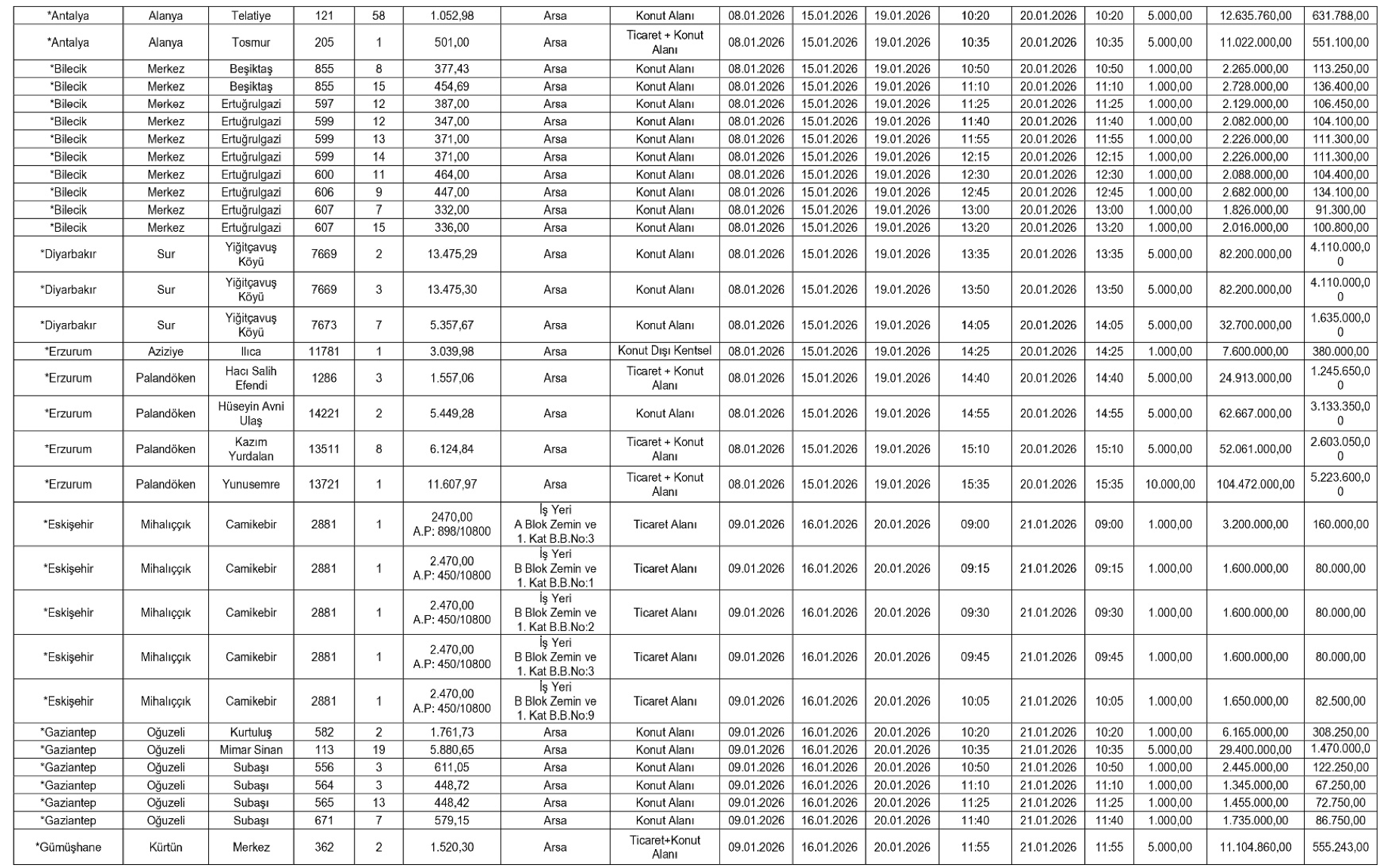 Teminat olarak yalnızca Türk Lirası ve Bankacılık Kanunu kapsamındaki kuruluşlarca düzenlenen süresiz kesin teminat mektupları kabul edilecek. İhaleyi kazananlar, satış bedelini peşin olarak SGK’nın ilgili hesaplarına yatırmakla yükümlü olacak.