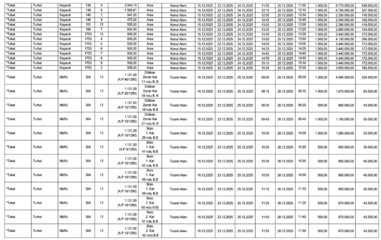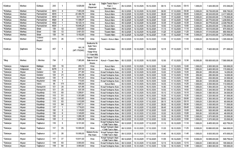 Satışa konu olan gayrimenkuller arasında imarlı arsalar, konut alanları, ticaret alanları ve karkas binalar bulunuyor. Özellikle yatırımcılar için fırsat niteliği taşıyan bu satışlardan SGK’nın kasasına önemli miktarda nakit girişi sağlanması hedefleniyor.