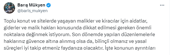 Barış Mükyen https://x.com/baris_mukyen X sosyal medya hesabından yaptığı paylaşımında şunları söyledi: