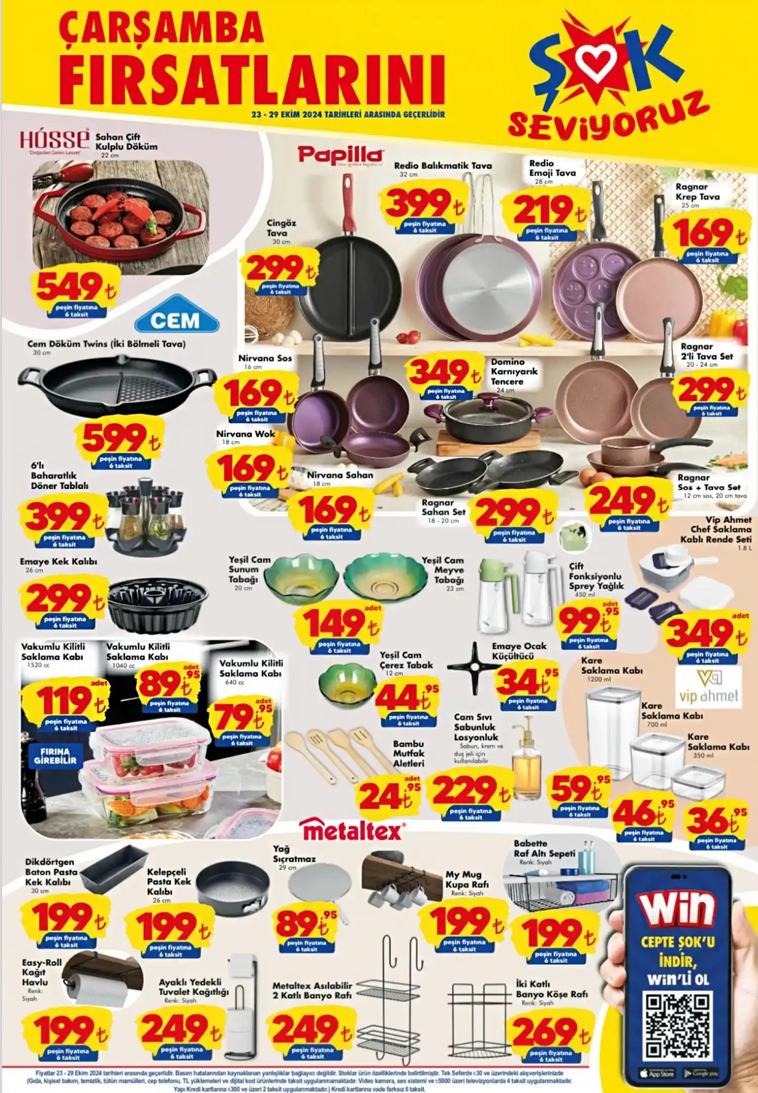 ŞOK 23 Ekim 2024 aktüel ürünler kataloğunu internet üzerinden paylaştı. ŞOK'ta bu çarşamba birçok üründe indirim kampanyası devam ediyor.