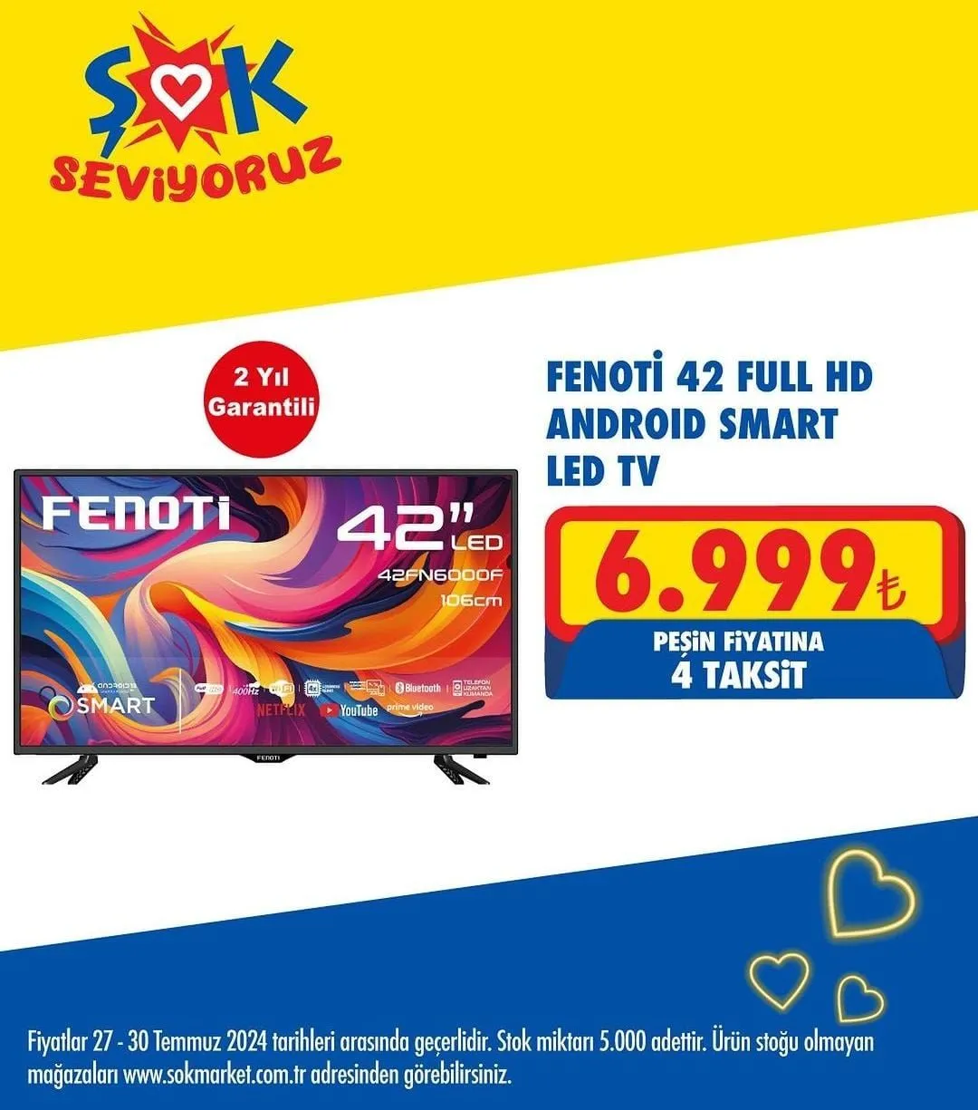 Fenoti 42 Full HD Android Smart Led TV 4 taksit 6.999 Türk Lirası.