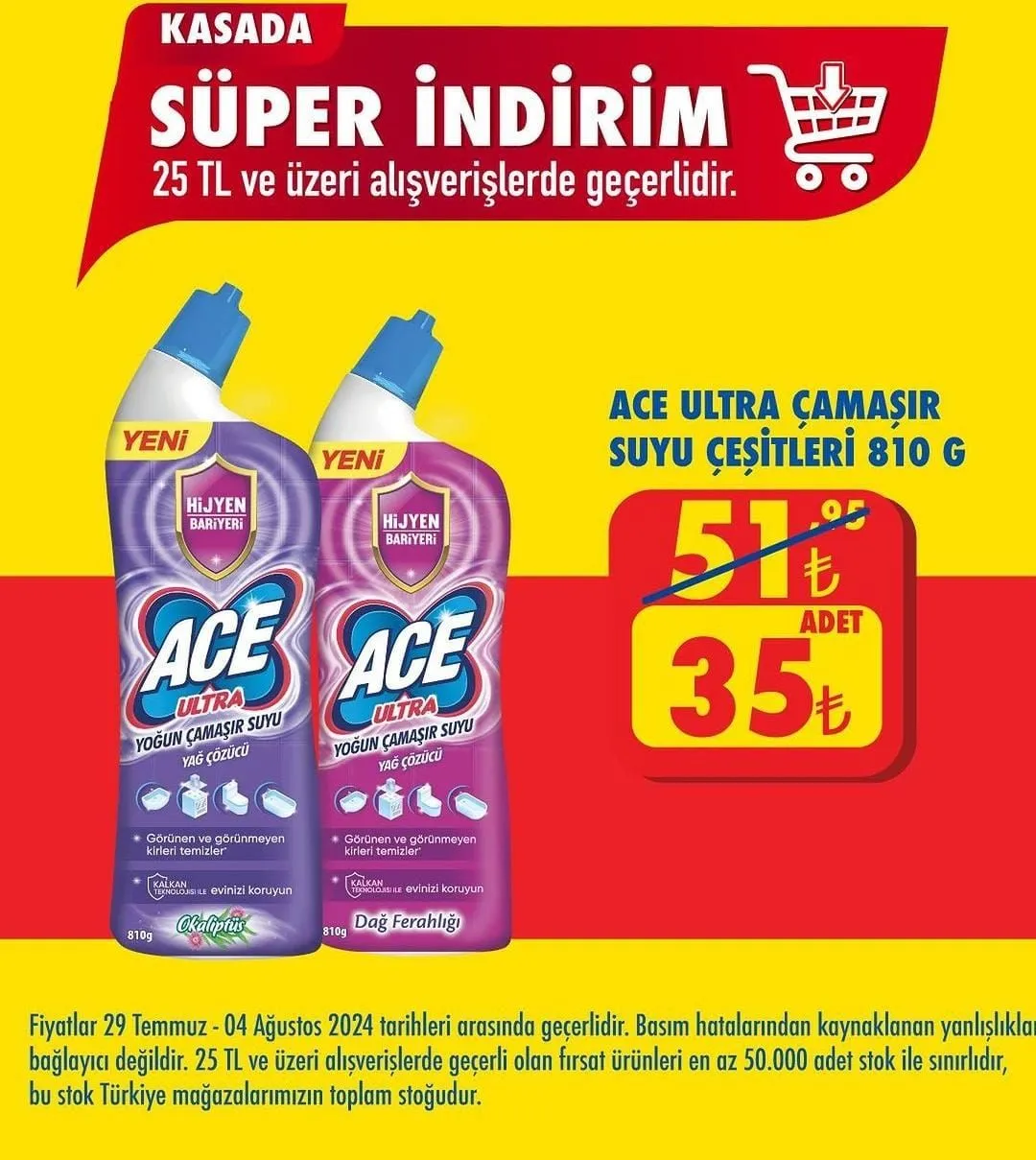 ACE Ultra Çamaşır Suyu Çeşitleri 35 Türk Lirası.