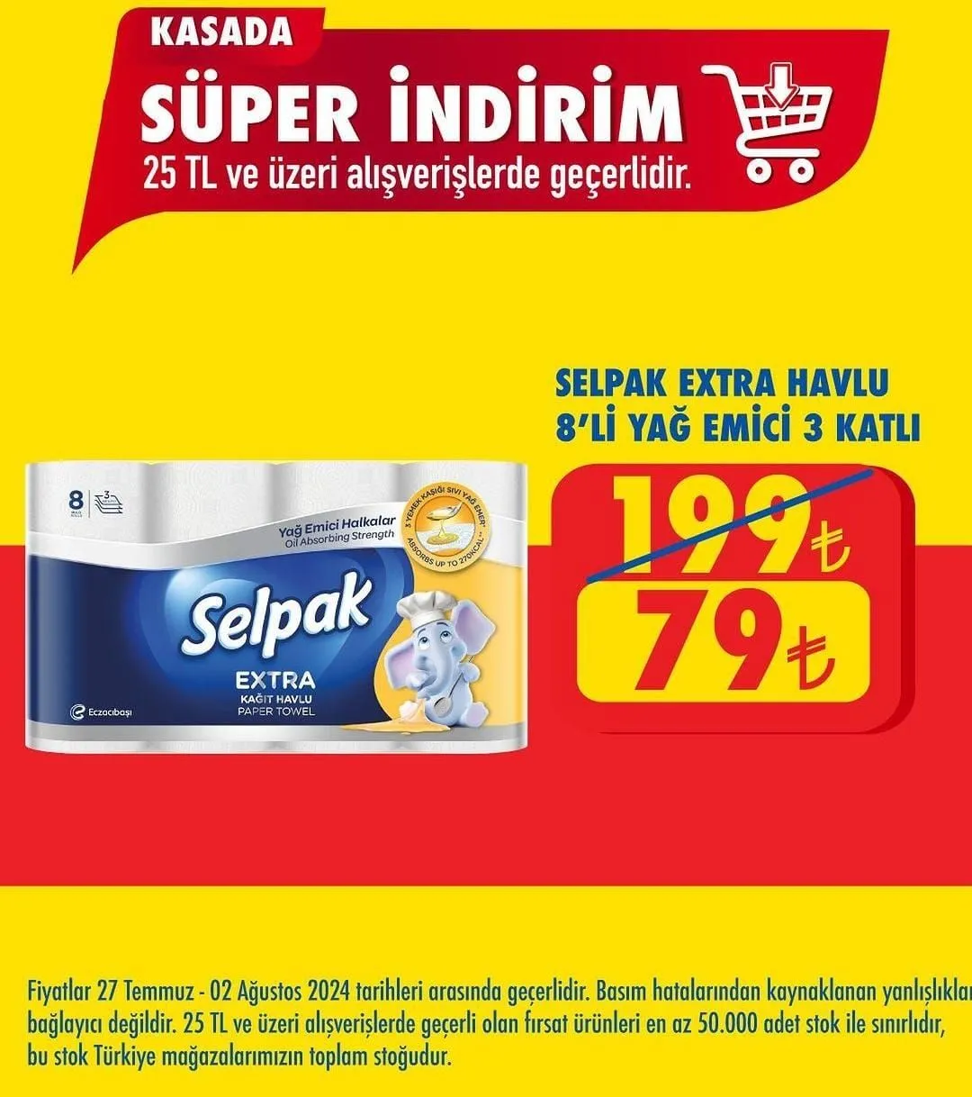 Selpak Evtra Havlu 8'li 79 Türk Lirası.