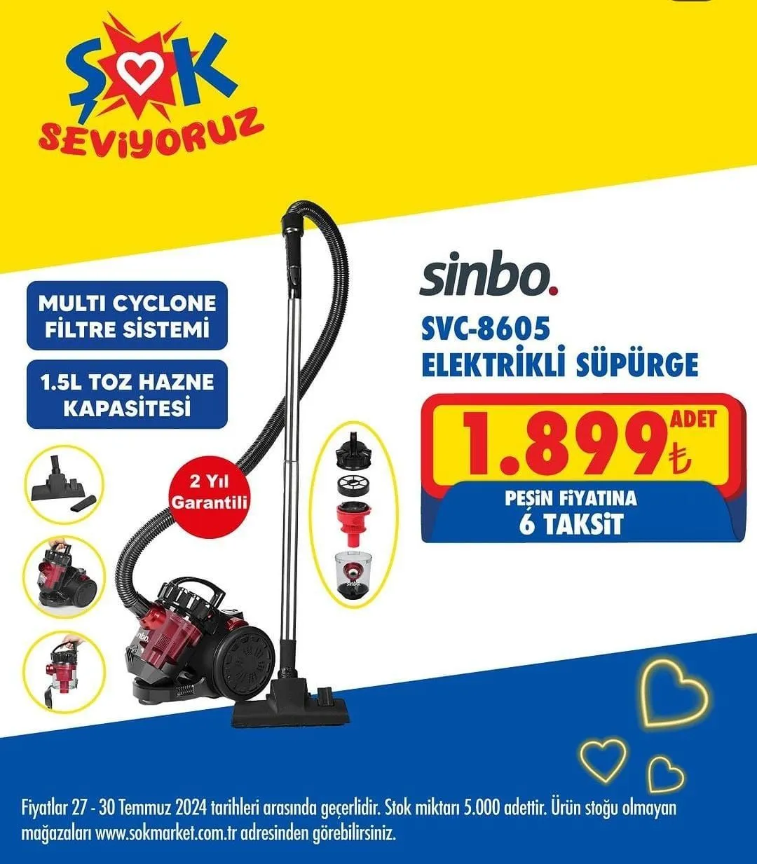 Sinbo SVC-8605 Elektrikli Süpürge 6 Taksit 1.899 Türk Lirası.