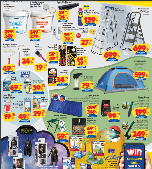 Yama Bandı 69,95 TL, Kapı Stoperi 39,95 TL,