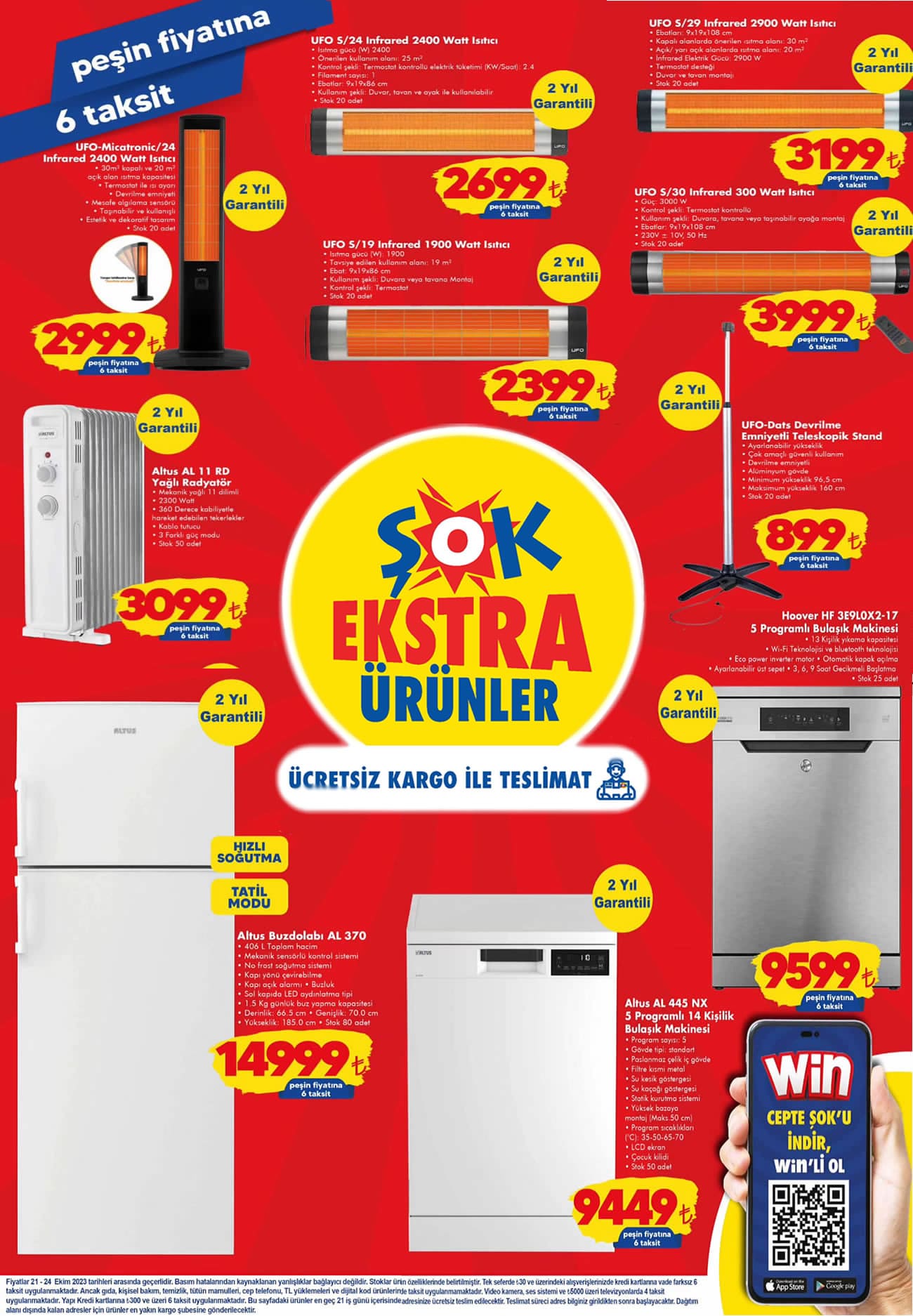 ŞOK Market 21-24 Ekim tarihleri arasında geçerli satışa çıkarılacak aktüel ürünlerini yayımladı. Bu kapsamda ŞOK'ta birçok ürün uygun fiyata satışa çıkarılacak. ŞOK Market'te Ufo ısıtıcı 2 bin 699 TL'ye, şemsiye 139 TL'ye satışa çıkarılacak! ŞOK 21 Ekim kataloğu...