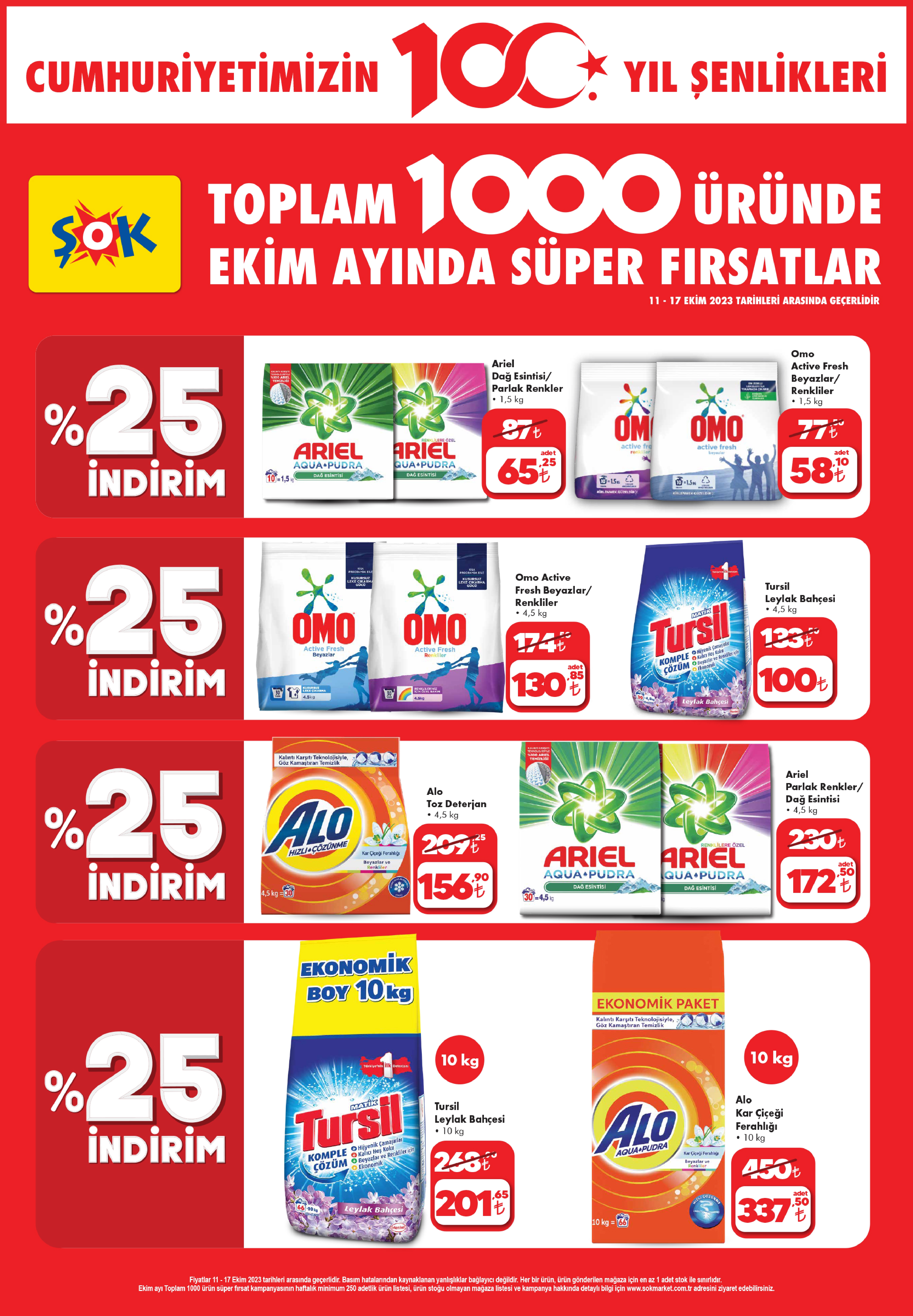 ŞOK’ta indirim bombardımanı başladı! Ariel, Omo, Alo ve Tursil ürünlerinde tam yüzde 25 indirim!