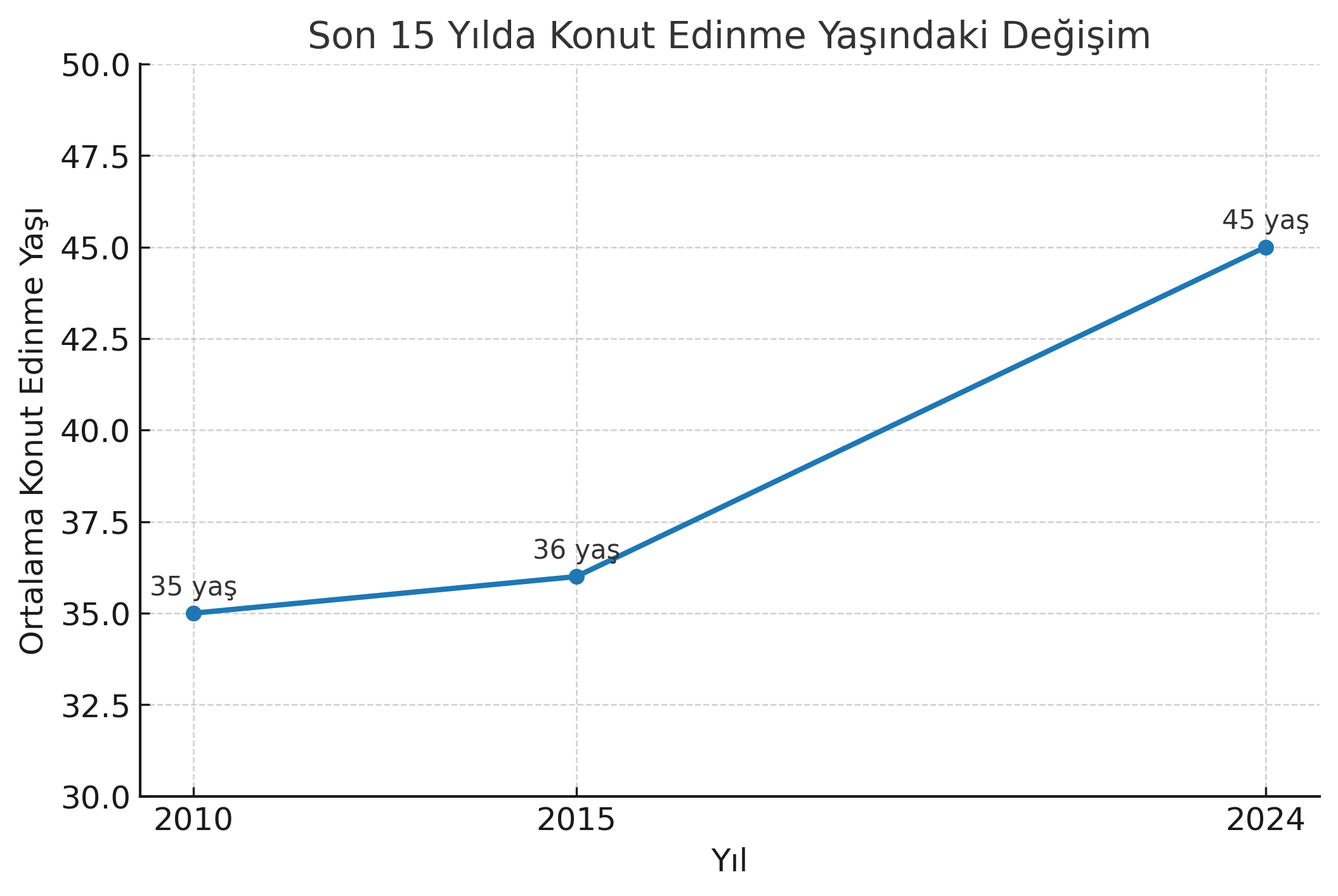 Türkiye’de konut edinme yaş aralığında son 15 yılda önemli bir değişim yaşandığını belirten GAPADA Gayrimenkul Kurucusu ve Yatırım Uzmanı Murat Tatu 2010’lu yılların ortasında konut kredisi kullananların en yoğun olduğu grubun 30’lu yaşlardayken, 2024 itibarıyla bu ağırlık 40’lı yaşlara kaydığını açıkladı.