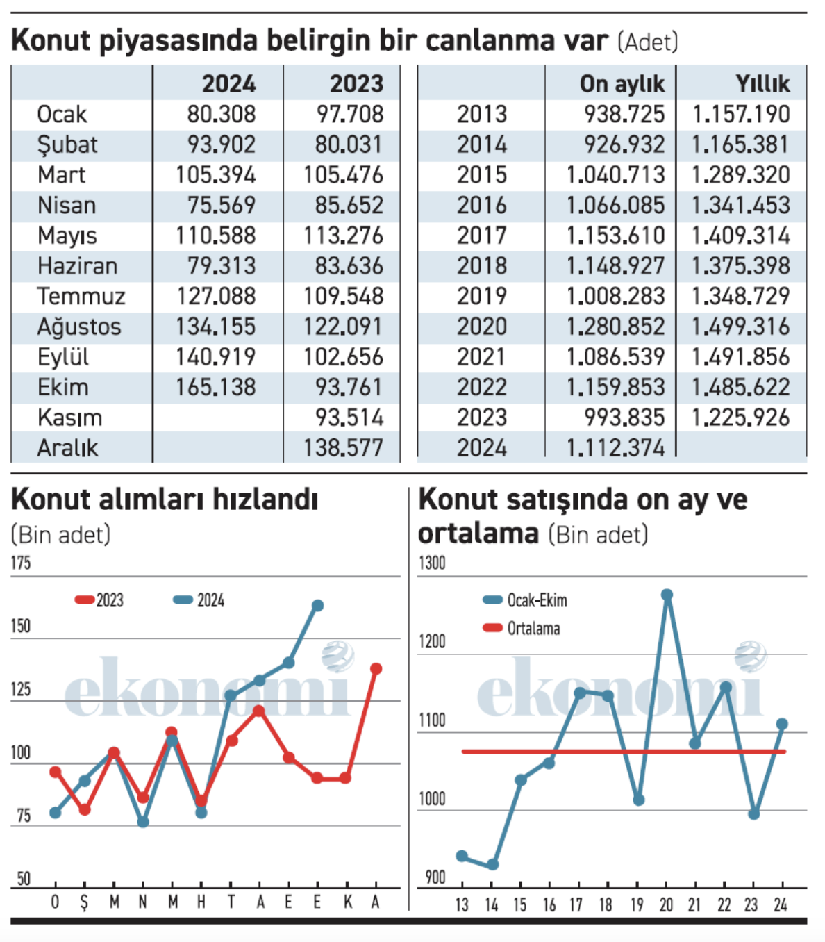 Türkiye İstatistik Kurumu’nun dün açıkladığı ve sektör tarafından da merakla beklenen resmi rakamlara göre Türkiye genelinde konut satışları Ekim ayında bir önceki senenin aynı ayına göre yüzde 76,1 oranında artış gösterdi ve 165 bin 138 şeklinde oldu.