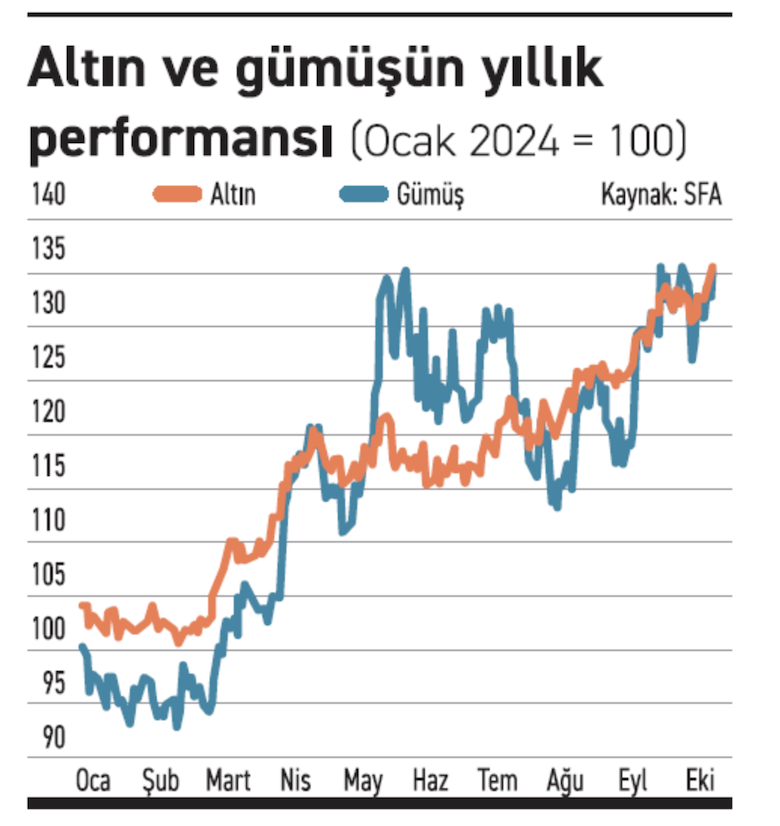 Gri metal, bu sene altından daha fazla getiri sağladı. Commerzbank'ın emtia analisti Carsten Fritsch, “Görünen o ki yatırımcılar artık gümüşü altına göre daha ucuz bir alternatif şeklinde görerek, gri metale yöneliyorlar” diyor. Ons başına 34 doların biraz üzerindeki gümüş, neredeyse 12 senedir hiç olmadığı kadar pahalı ve orta vadede hedefi 40 dolar şeklinde belirledi. Citi, gümüş fiyatlarına ilişkin 6-12 aylık tahminini ons başına 38 dolardan 40 dolara çıkarttı. Londra Külçe Piyasası Derneği'nin yıllık toplantısına katılım sağlayan delegeler gümüş fiyatlarının gelecek yıl ons başına 45 dolara çıkacağını söyledi.