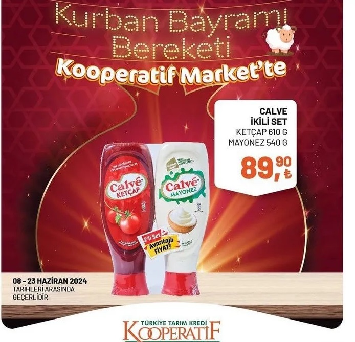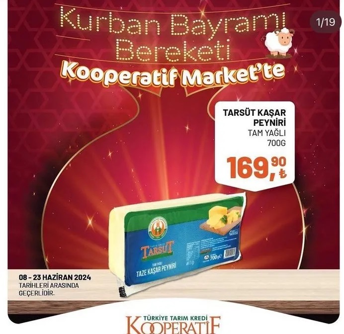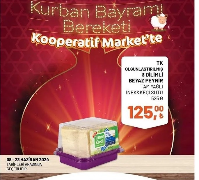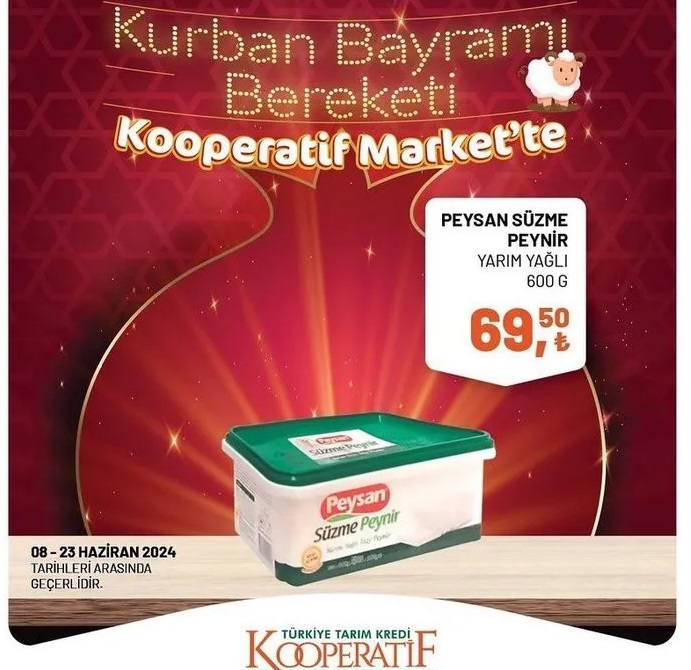 Tarım Kredi Kooperatif Marketleri, 14-23 Haziran tarihlerinde Kurban Bayramı'na özel indirimli ürünler listesini açıkladı. Et, tavuk, peynir, bayram çikolatası, kolonya, bakliyat ve birçok farklı üründe cazip indirimler raflarda yerini alıyor.