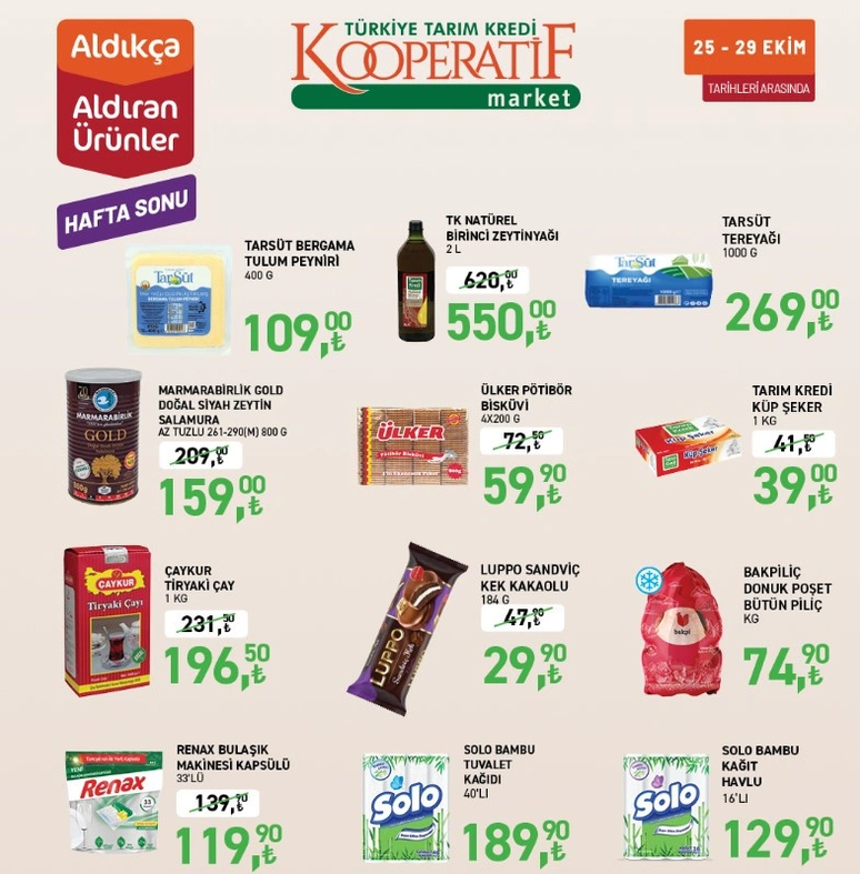 Tarım Kredi Kooperatif Marketlerde hafta sonu indirimli ürünler raflarda yerini alacak. Tarım Kredi Marketlerde indirimler 2 gün boyunca devam edecek olan indirim kampanyasını kaçırmayın.