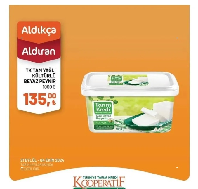 Eylül ayının son gününde Tarım Kredi Marketleri de büyük bir indirim kampanyası başlattığını duyurdu. Tarım Kredi'de 5 litrelik ayçiçek yağı sadece 195 TL'den satışa sunuluyor. Uygun fiyatlı ürünleri ile dikkat çeken Tarım Kredi Marketleri, bu kampanya ile birlikte beyaz peynir ve bakliyat ürünlerinde de indirim sunuyor.