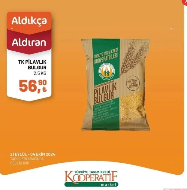 Pilavlık Bulgur: 56,90 Türk Lirası.
