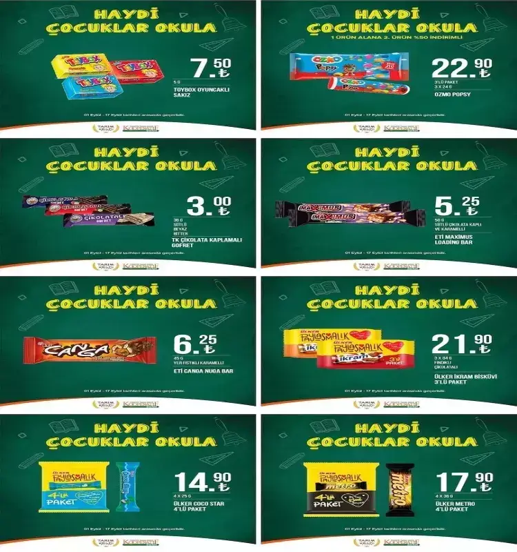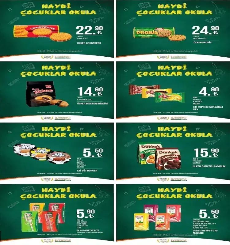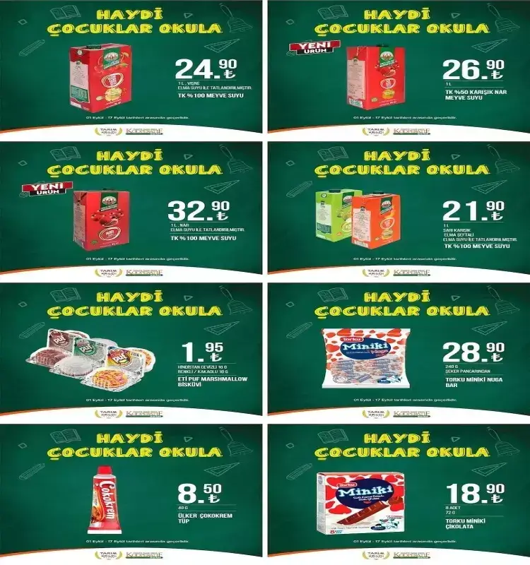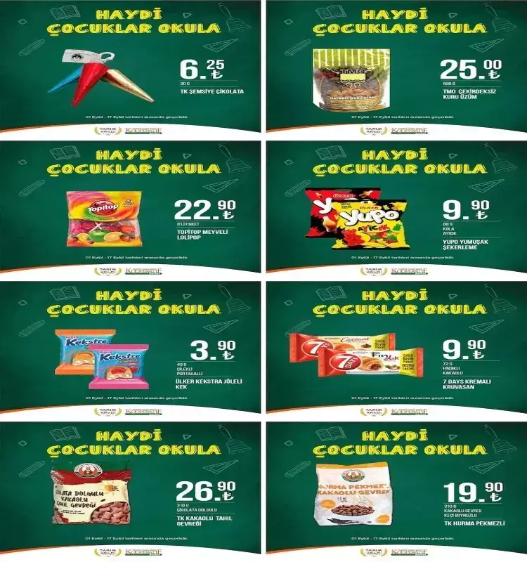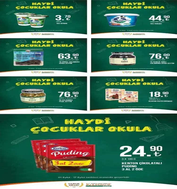 Tarım Kredi Market 6-17 Eylül aktüel kataloğunu yayımlandı. Tarım Kredi'de kırtasiye malzemeleri fiyatları çakıldı, ayçiçek yağında çılgın indirim var.