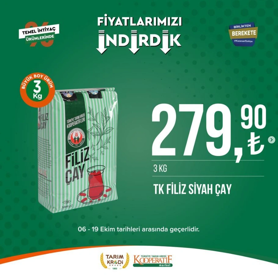Bu fırsatı kaçırmak istemeyen siyah çay tutkunları için Tarım Kredi Market, 3 kilo siyah çayı uygun fiyatıyla sunmaya devam ediyor. Kampanyadan yararlanmak için 19 Ekim'e kadar Tarım Kredi Market şubelerine veya çevrimiçi platformlarına başvurabilirsiniz. Lezzetli bir bardak siyah çayın keyfini çıkarmak için bu fırsatı değerlendirmenin tam zamanı!