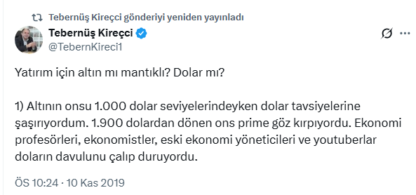 Tebernüş Kireçci 6 yıl önceden açıklamıştı! Yatırım için altın mı mantıklı? Dolar mı?