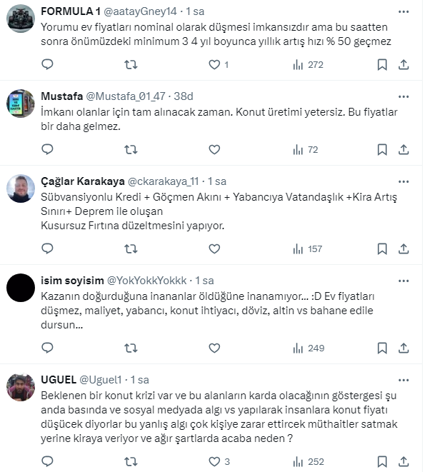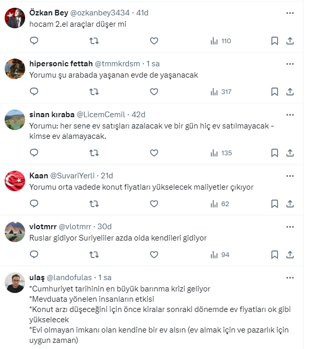 Vatandaşlar, konut fiyatlarının fahiş rakamlara ulaşması ile konut sahibi olmakta zorlanırken, konut fiyatlarının ne olacağını merak ediyor. Ev almak için doğru zaman olup olmadığını merak edenler için Tebernüş Kireçci, sosyal medya hesabından konut satışlarındaki rakamları değerlendirdi ve sıfır konutların pahalı olduğunu ama ikinci elde fırsatların devam ettiğini açıkladı. İşte Kireçci'nin o açıklaması ve gelen yorumlar...