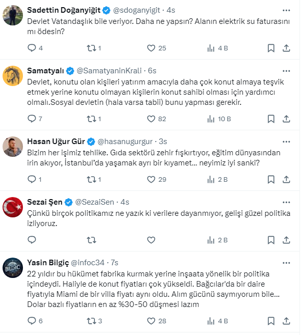 Mağdur ev sahibi @kiracimagduru: Zaten ev sahiplerini küstürdüler , mecbur kalmadıkça kiraya vermek istemiyoruz. Barınma ihtiyacını devlet karşılasın, mal sahipleri devlet olsun ,bak o zaman kirayı ödemesinler ,%25 zam yapsınlar , çık diyince çıkmasınlar ne oluyor. Eski evsahiplerini mumla ararlar.