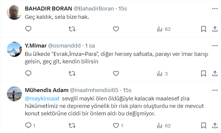 Sürekli diyorum. İnşaat sektörüne çok ciddi bir düzenleme getirilmeli. Bu konu milli güvenlik meselesidir.
