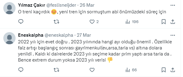 2022 yazında bazı arkadaşlarımıza ellerindeki altınları sattırıp toprak aldırttım.