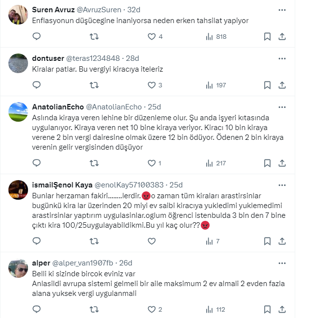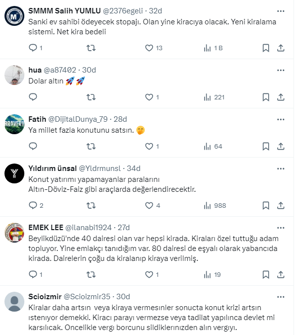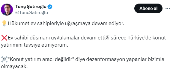 Ev sahibi düşmanı uygulamalar devam ettiği sürece Türkiye'de konut yatırımını tavsiye etmiyorum.