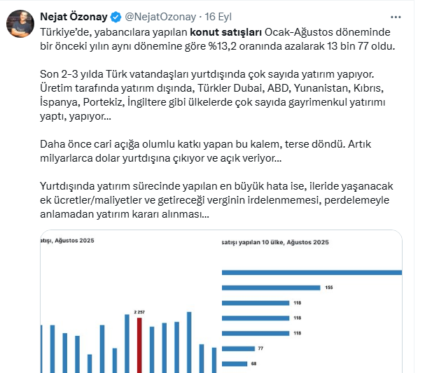 İşte ünlü ekonomist Nejat Özonay'ın sosyal medya hesabı X'ten yaptığı o paylaşım...