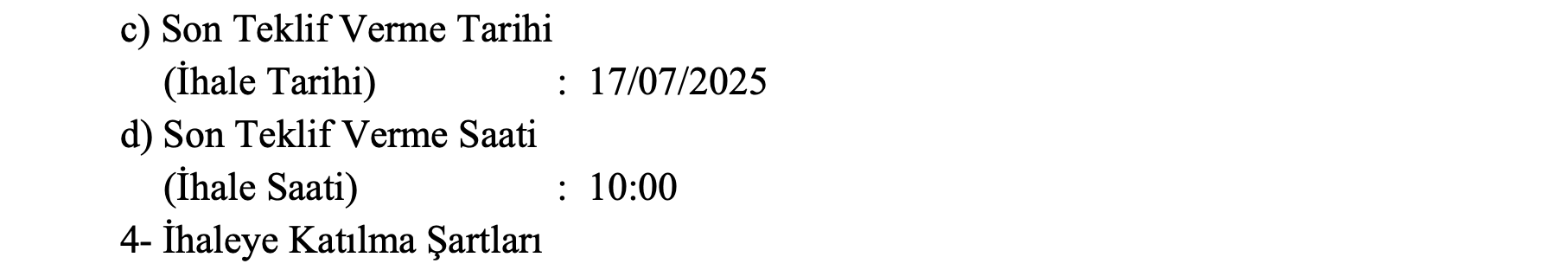 3 yıllığına kiraya verilecek olan gayrimenkuller için son teklif verme tarihi 17 Temmuz 2025 saat 10.00 olarak açıklandı.
