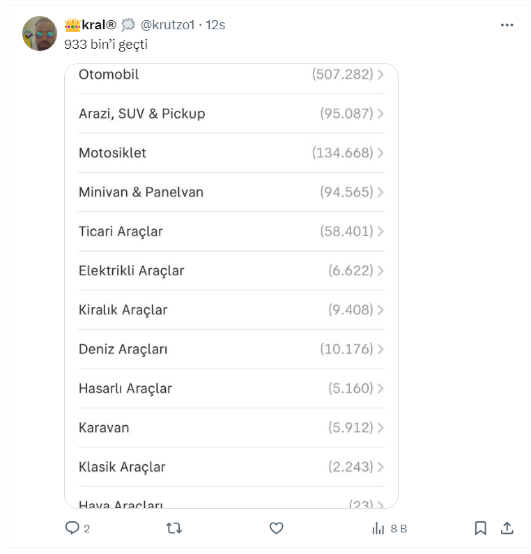 Türkiye’de ilk kez satılık vasıta ilan sayısı 1 milyona yaklaştı!
