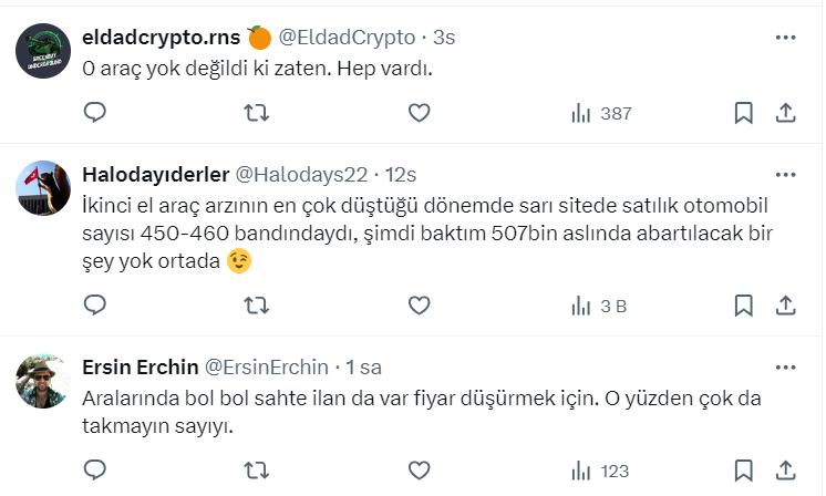Piyasaya yeni giren araçları ve piyasadaki ikinci el araçları topladılar. Talebin karşılanmasını zorlaştırdılar. Halka zulmettiler, acımadılar. Arsalarını evlerini sattılar, altınlarını bozup ne kadar birikimleri varsa otomobile koydular. Şimdi ağlıyorlar. Halkı soymak cazip gelmişti çünkü.