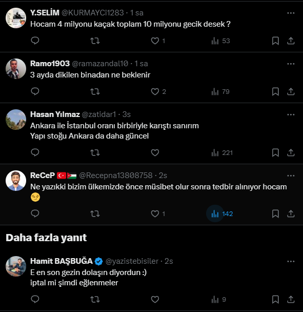 Türkiye'deki 4 milyon kaçak, çarpık yapıda yaklaşık 40 milyon kişi yaşıyor. Deprem güvensiz bu yapıların; %33'ü Kuzey Marmara Depremini bekleyen İstanbul'da,%12'si İzmir'de,%5'i Adana'da, %4'ü Bursa'da, %30'u Ankara'da. Çökmüş ekonomiyle yeni Hataylar nasıl önlenir?