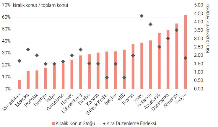 İsveç'teki kira düzenlemeleri en katı olanı olarak değerlendiriliyor. Öte yandan, İsviçre, OECD ülkeleri arasında toplam konut stoğu içerisinde en yüksek kiralık konut yüzdesine sahip ülkelerden biri.
