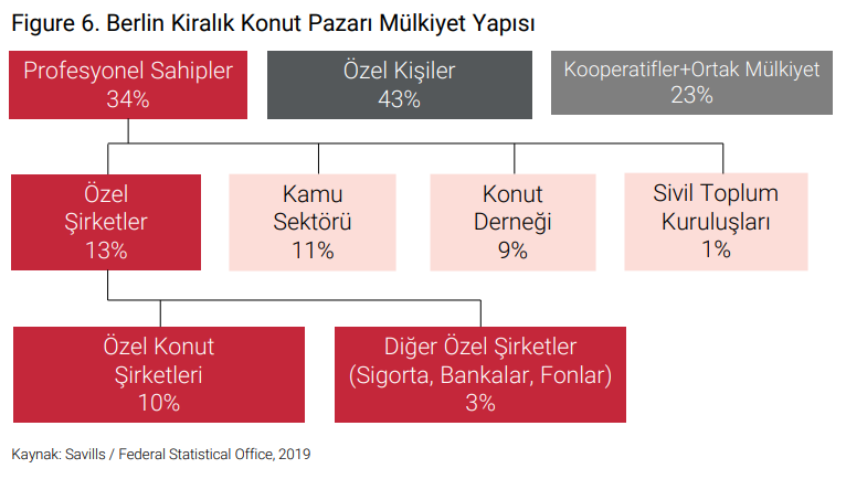 Deutsche Wohnen’ın konut stoğunun yaklaşık yüzde 71'i Berlin’de yer almakta. Berlin kiralık konut pazarında mülkiyet dağılımı ise şu şekilde;