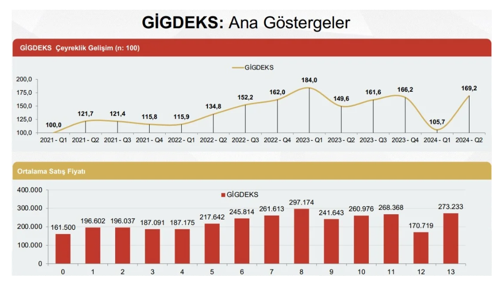 Paylaşılan detaylara göre Uluslararası yatırımcıya gayrimenkul satışlarının zayıfladığı konjonktürde GİGDEKS, bir önceki çeyrekteki 105,7 seviyesinden sonra 2024 2. çeyrekte 169,2’ye ulaştı. 2023'ün aynı döneminde GİGDEKS puanı 149,6 seviyelerinde ölçülmüştü.