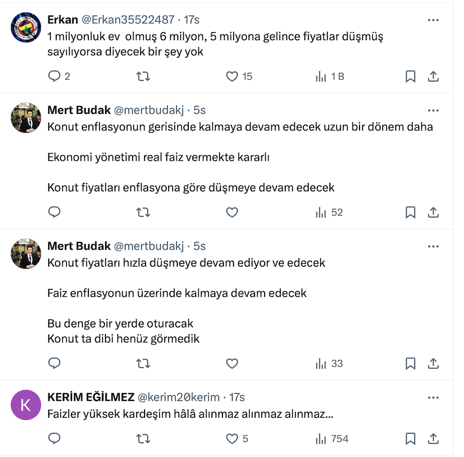 Pek çok kişi de konut almak için doğru zaman olup olmadığını merak ederken, yatırımcıların gündeminden düşmeyen konu ile ilgili bir açıklama yapan Analist ve kripto fenomeni Murat Ali Calman "Şu anda artık buralar alım fırsatıdır diyorum.” ifadelerini kullandı.
