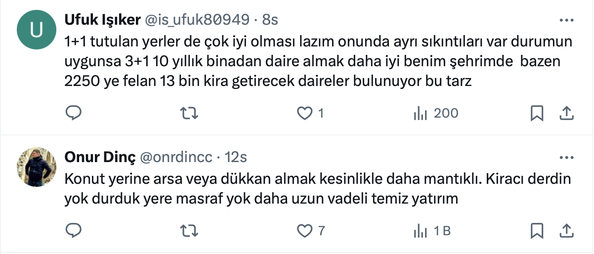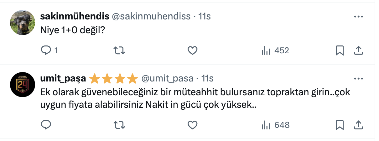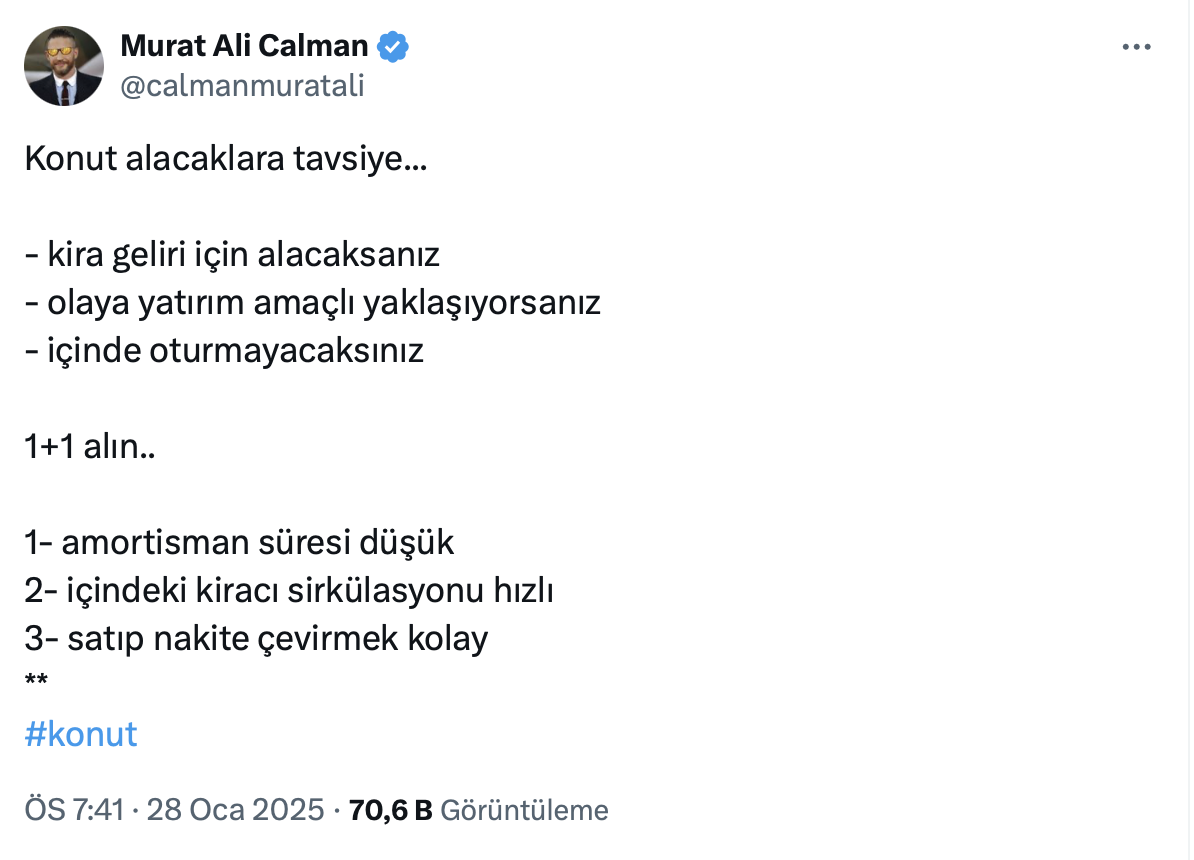 Pek çok kişi de konut almak için doğru zaman olup olmadığını merak ederken, Analist ve kripto fenomeni Murat Ali Calman’dan da kira geliri için ev almak isteyenlere 1+1 tavsiyesi geldi.