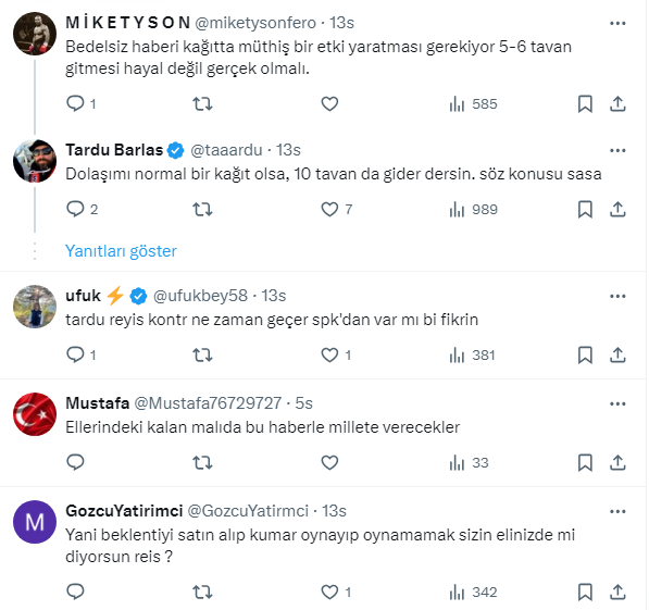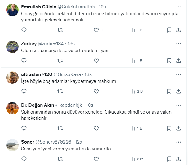 Borsa Temel Analisti Tardu Barlas, dün Sasa’nın aldığı kararı duyurdu. Barlas, bu kararın ardından “Hisse” düşer” diyen takipçilerine cevap olarak twitter.com/taaardu X sosyal medya hesabından bir Sasa değerlendirme paylaştı. Tardu Barlas, kararın ardından hissede olabilecekleri aktardı. İşte Barlas’ın o paylaşımı…