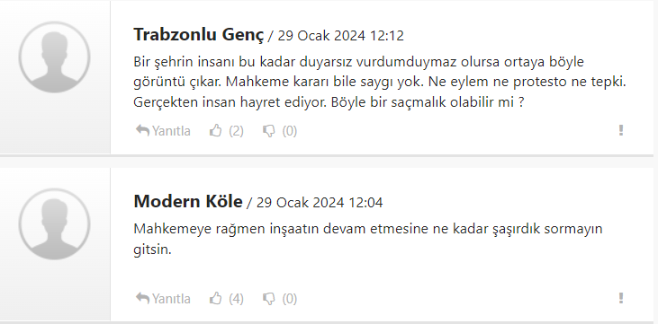 11 Aralık 2023 tarihinde Trabzon İdare Mahkemesi tarafından inşaat ruhsatı iptal edilen Trabzon Forum Alışveriş Merkezi ek binasında ruhsatsız çalışmaların devam etmesi tepki çekti. Söz konusu inşaatı belediye de engelleyemedi. Yaşanan duruma vatandaşlar adeta isyan etti.