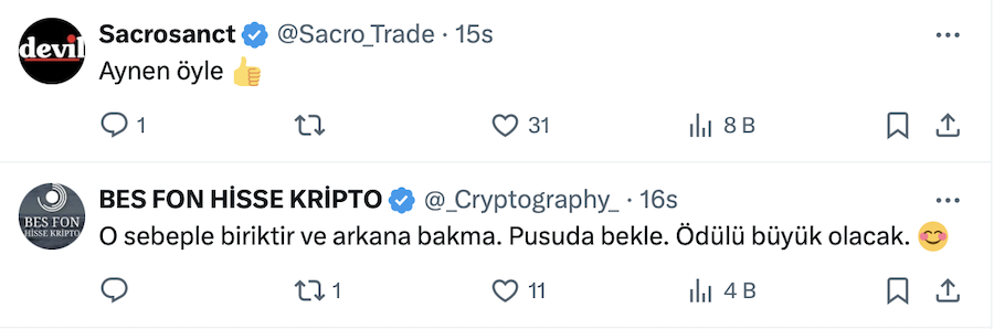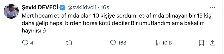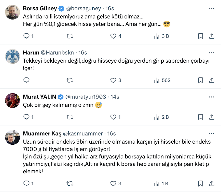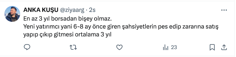 Ne zaman onların 9 u bu borsa kötü, paramız enflasyon altında kaldı faize,onlara geçiyoruz dedi pes etti o zaman çıkış başlar!