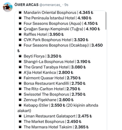 Ramazan ayının gelmesiyle birlikte oteller, restoranlar lokantalar da özel iftar menülerini sunmaya başladı. Türkiye İstatistik Kurumu'na göre şubat ayında en yüksek fiyat artışı yıllık yüzde 94,78 ile lokanta ve otellerde gerçekleşti. Restoranlarda fiyat bir yılda yüzde 100'e yakın arttı. Bu artış iftar menülerine de yansıdı. Geçen yıl 300-400 lira arasında olan bir iftar menüsü için bu yıl 800 lira isteniyor.